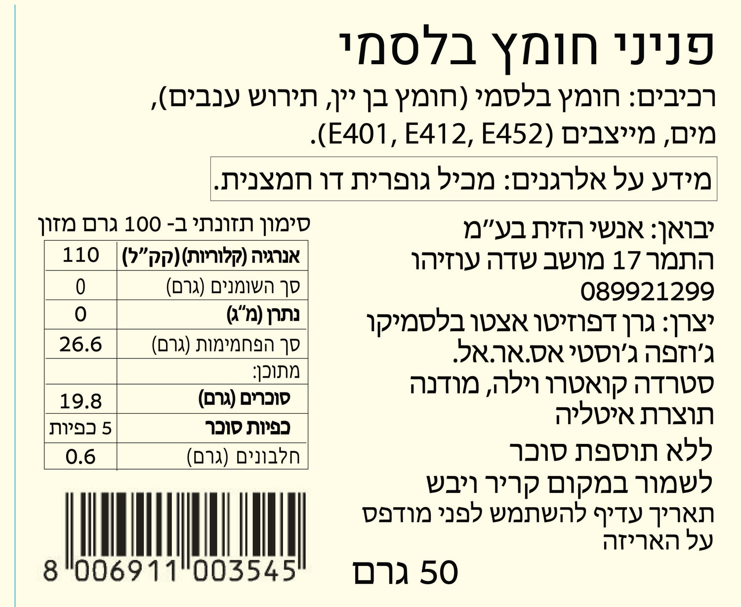 ג'וסטי- פניני בלסמי IGP בצנצנת 50 גר-לא כשר
