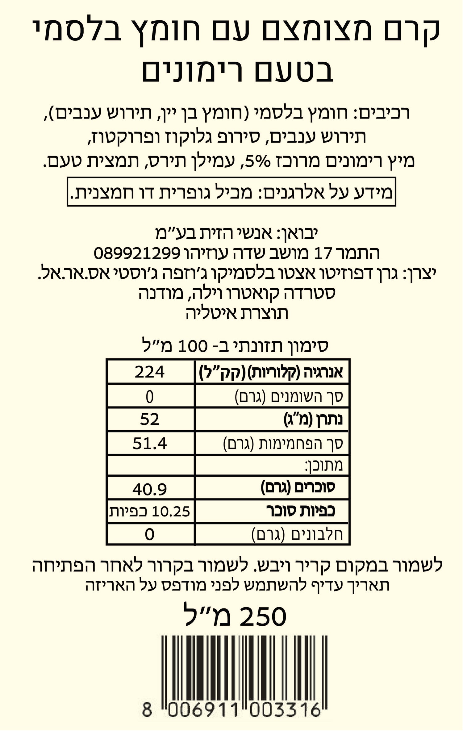 ג'וסטי- קרם בלסמי IGP בטעם רימון בקבוק 250 מ"ל- לא כשר