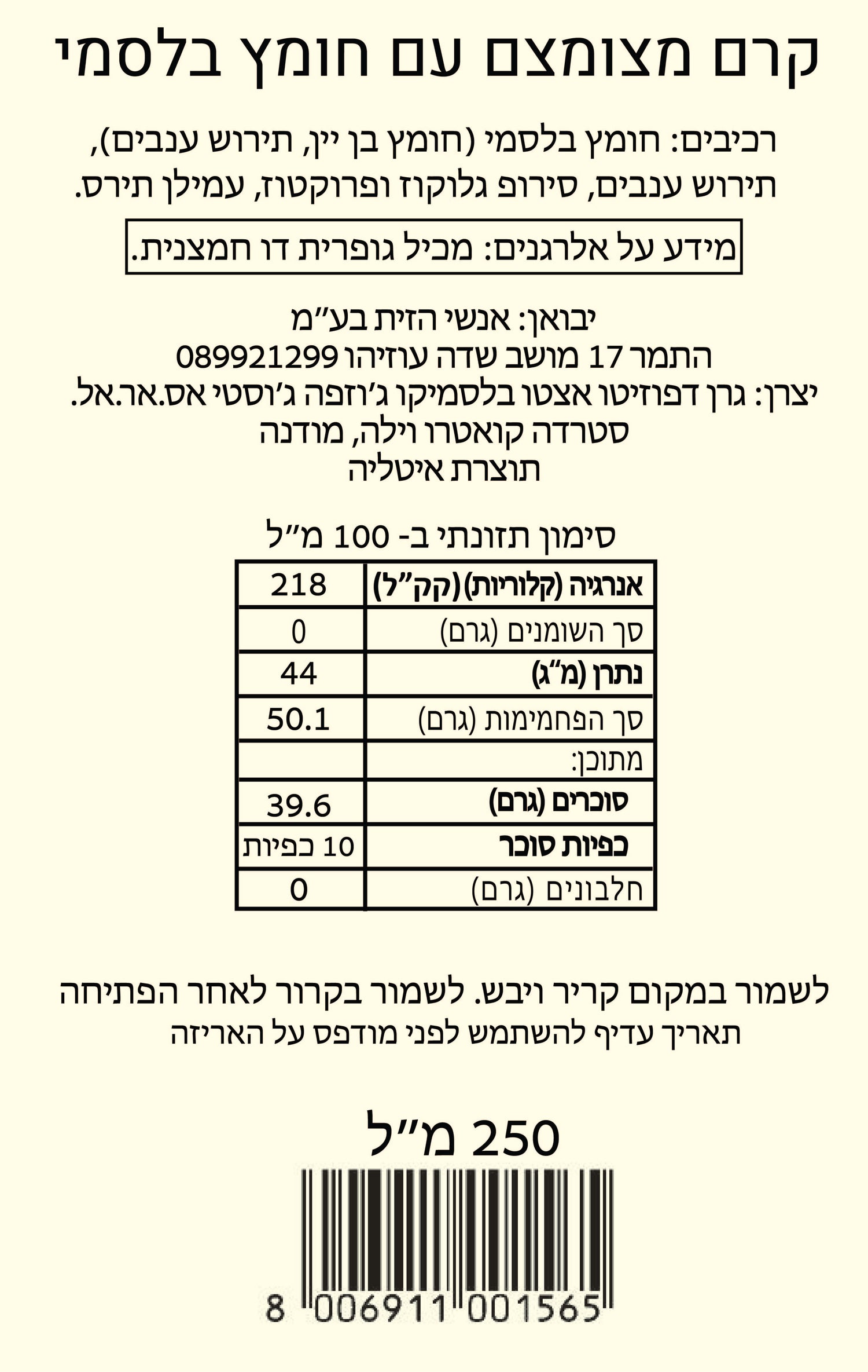 ג'וסטי- קרם בלסמי IGP בקבוק 250 מ"ל -לא כשר