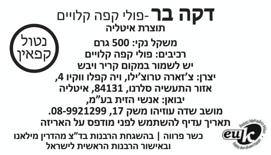 דקה בר- פולי קפה נטול קפאין 500 גרם