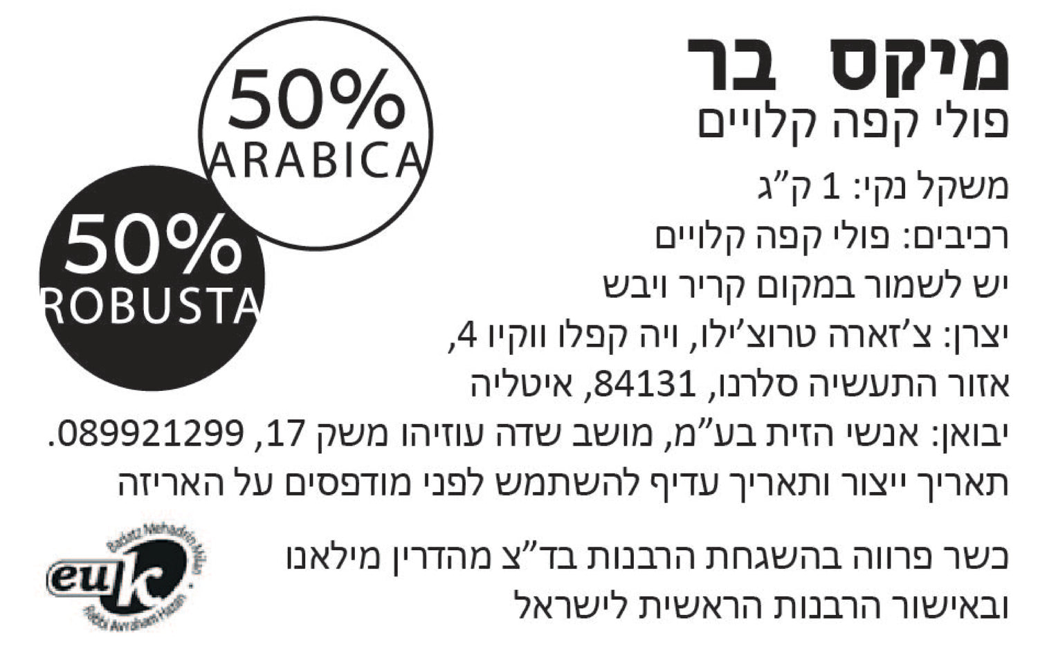 מיקס בר- גוף מלא וחזק תערובת פולים של זני ערביקה ורובוסטה בעלי גוף מלא, לאלה שאוהבים קפה חזק וסמיך. זהו אספרסו יחודי מאופיין בריחות חזקים של שוקולד מריר ונגיעות של תבלינים עדינים. קפה זה מתבלט בקרמה יציבה (הקצף העדין שנוצר על הקפה) ומרקם סמיך. קפה מחוספס בעל טעם עשיר וחזק. הנאה מלאה מאספרסו קלאסי. הרכב- 50% ערביקה- 50% רובוסטה הרכב ארומה- קקאו-שוקולד מריר-פירות יבשים-תבלינים-קליה מוצא הפולים- דרום אמריקה, אפריקה, אסיה