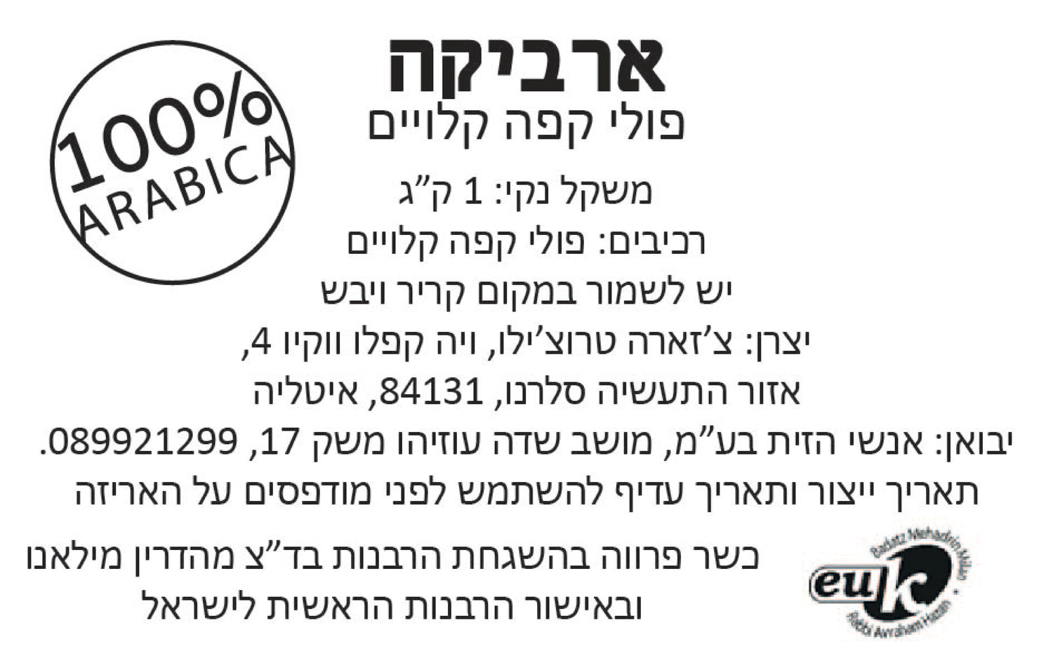ערביקה 100%- 1 ק"ג פולי קפה קלויים