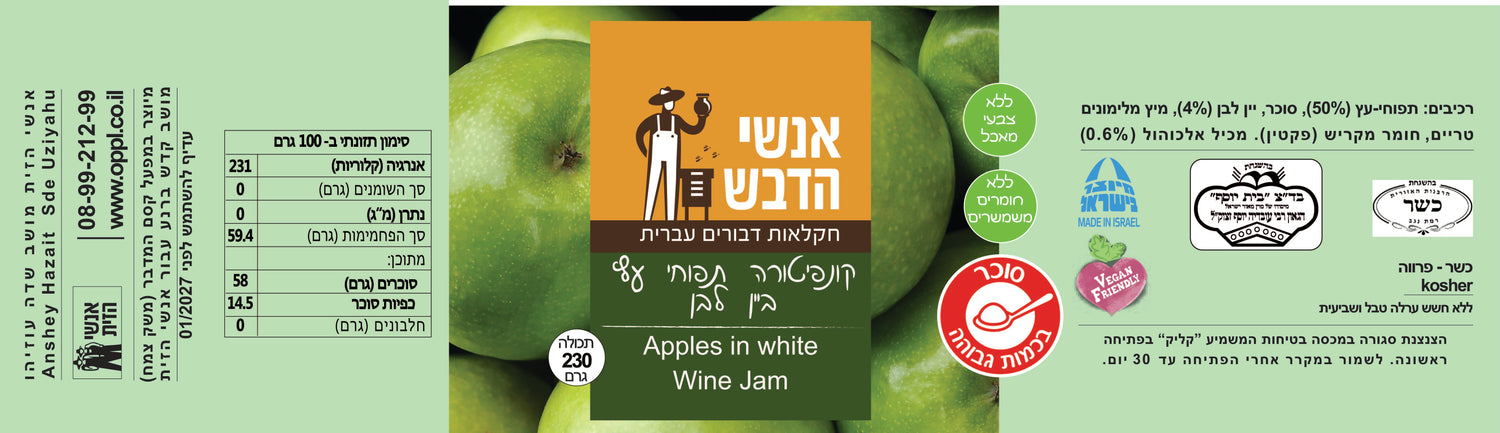 קונפיטורת תפוחי עץ ביין לבן 230 גרם.