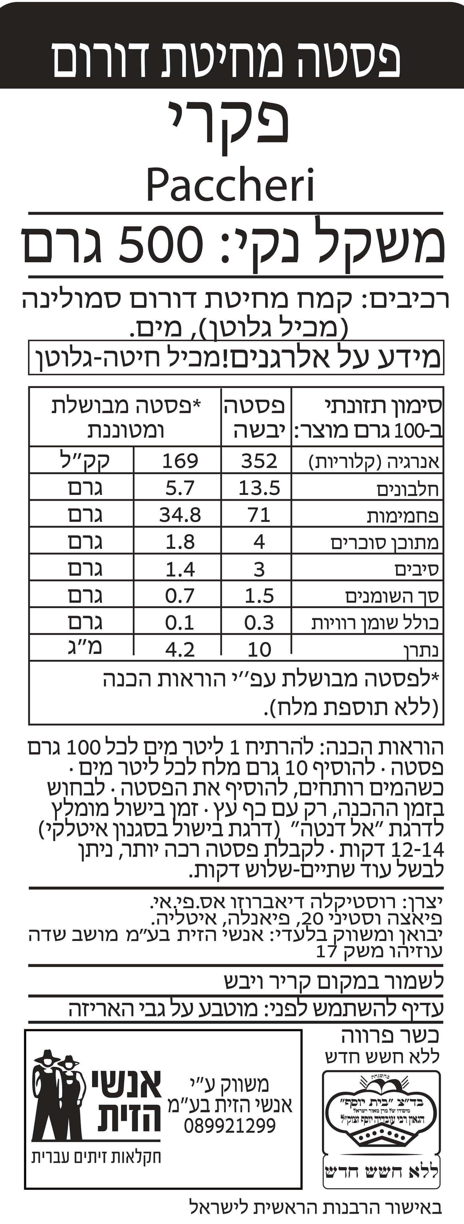 רוסטיקלה- ספגטי טימיליהמחיר רגיל 42 ₪מחיר מכירה 42 ₪ מחיר רגילפריט 8.40 ₪ / לכל 100 גרםאזל מהמלאי