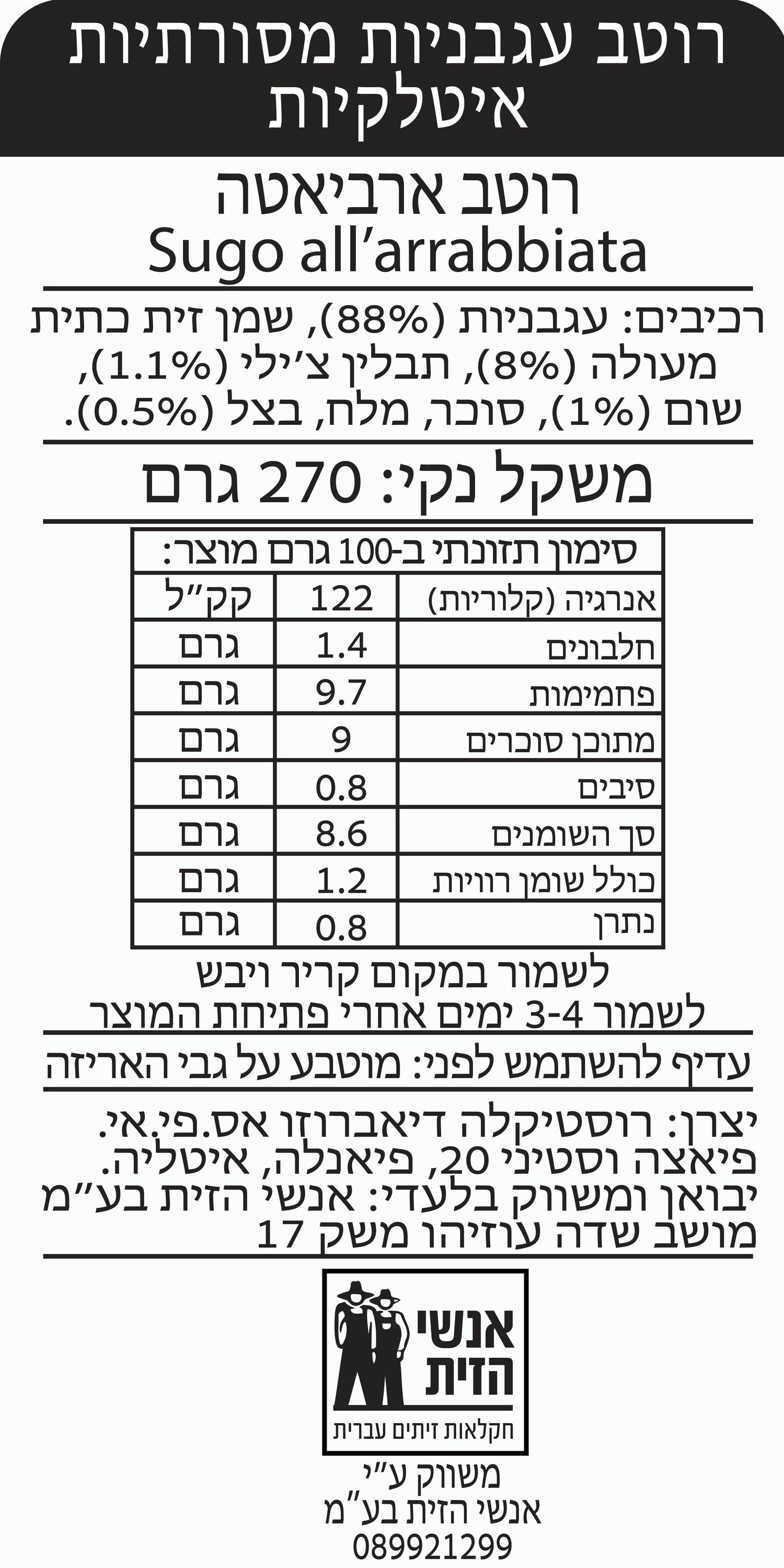 רוסטיקלה- רוטב אל'ארביאטה 270 גרם