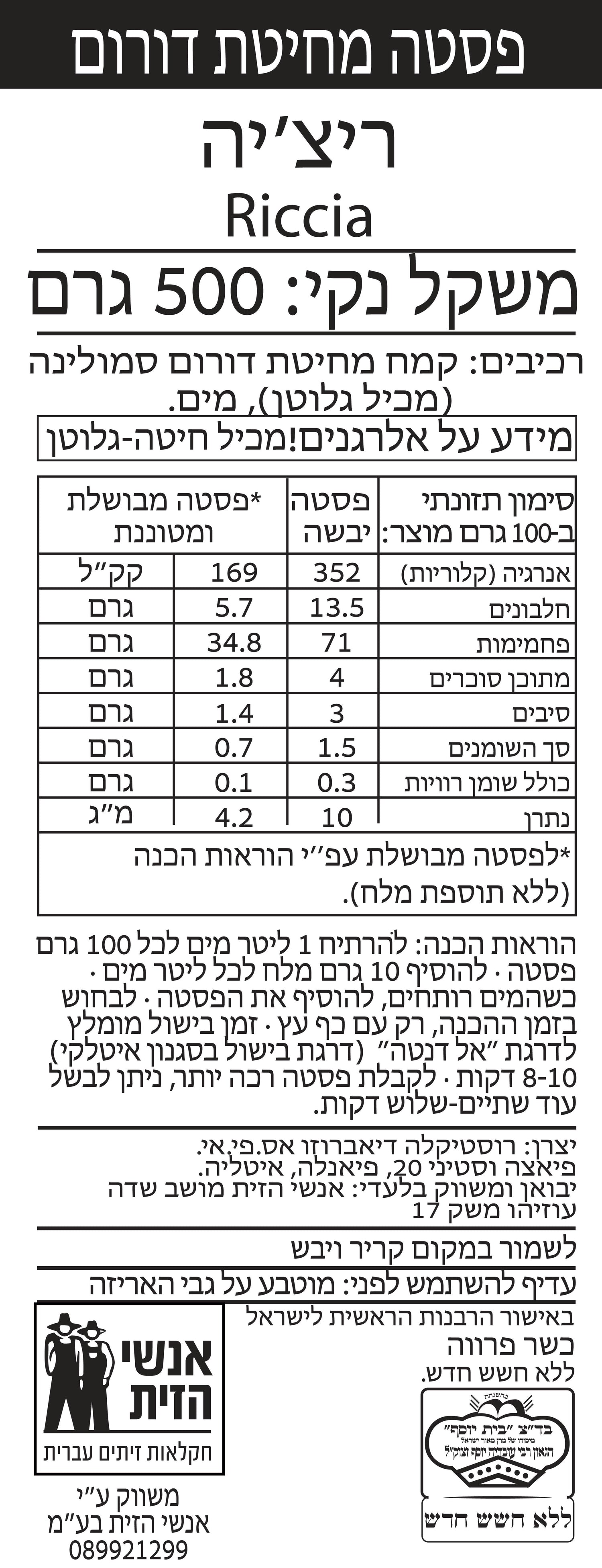 רוסטיקלה- ריצ'יה 500 גרם